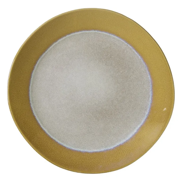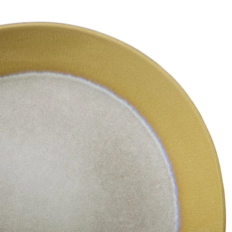 Het bord is voorzien van reactive glaze, een bijzonder type glazuur dat wordt toegepast bij de productie van deze items. Dit glazuur reageert op de chemische samenstelling van het materiaal en de omgeving tijdens het bakproces, waardoor elk item een unieke afwerking krijgt.