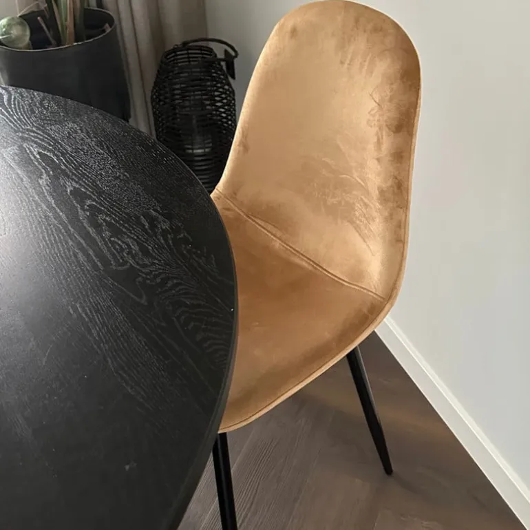 Deze velvet eetkamerstoel Ivy is een echte eyecatcher voor aan jouw dinertafel of bureau. De zacht glanzende velvet stof geeft stoel Ivy een chique uitstraling en de metalen pootjes zorgen voor een stoere touch. De veelzijdige eetkamerstoel heeft afgeronde vormen en is verkrijgbaar in diverse trendy kleuren. De stoel is voorzien van een stevig metalen frame en een comfortabele zitting en rugleuning.