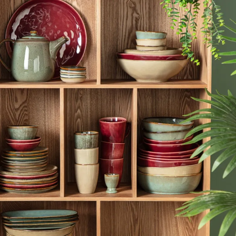 Dit product is voorzien van reactive glaze, een bijzonder type glazuur dat wordt toegepast bij de productie van deze aardewerk items. Het glazuur reageert op de chemische samenstelling van het materiaal en de omgeving tijdens het bakproces, waardoor elk item een unieke afwerking krijgt.