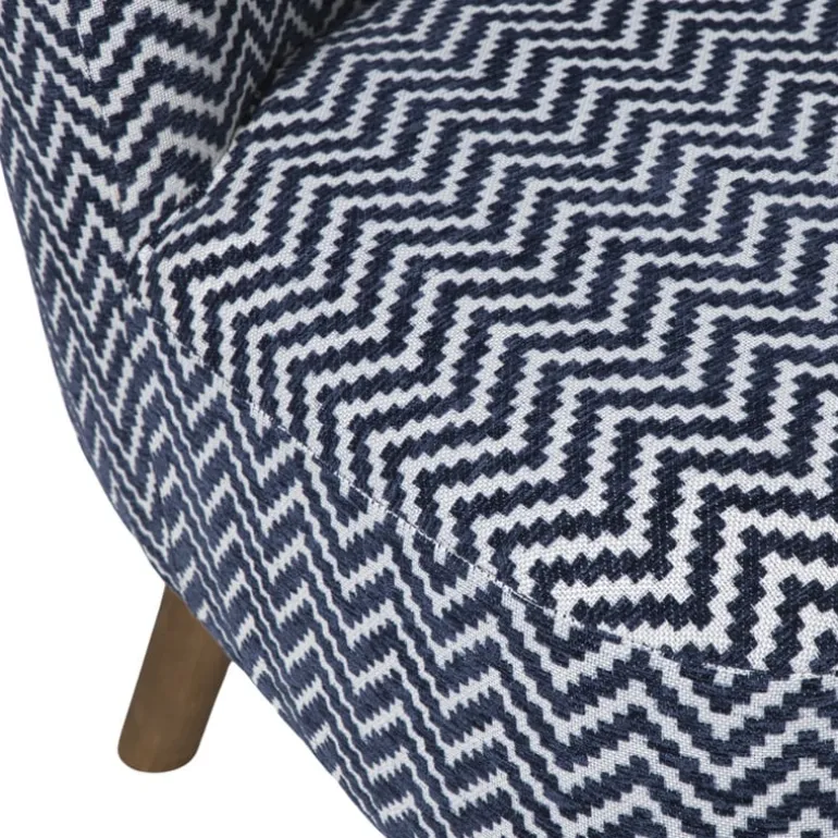 Durf te kiezen voor een eyecatcher! Deze fauteuil met zigzagprint in blauw en wit brengt een flinke dosis speelsheid én stijl in huis. De compacte afmeting van 69x66x56 cm maakt ‘m perfect voor in een leeshoek, slaapkamer of als opvallend accent in de woonkamer. De zachte zitting zorgt voor comfortabel relaxen, terwijl de houten poten zorgen voor een stevige basis. Ideaal voor iedereen die net dat beetje lef in z’n interieur durft te brengen.