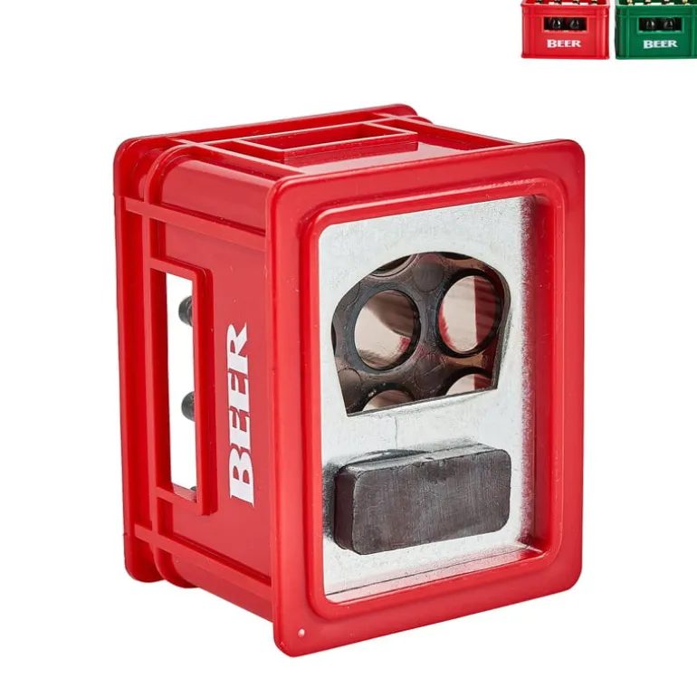 Een echte bierfan heeft altijd een flessenopener bij de hand. Bijvoorbeeld dit originele exemplaar in de vorm van een bierkrat! Een keer knipperen en je bierflesje is open. Aan de achterzijde zit een magneet zodat je de opener op kan hangen aan de koelkast. De bierkrat opener is gemaakt van kunststof en heeft een rode of groene kleur.
