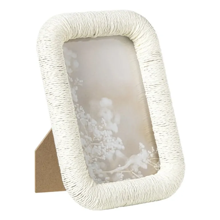 Geef je mooiste herinneringen een stijlvolle plek met deze witte fotolijst! Het frame is gemaakt van gevlochten papierkoord en heeft een glasplaat die je foto’s perfect beschermt. Met zijn natuurlijke uitstraling past deze lijst moeiteloos in elk interieur, van modern tot bohemian. Zet hem neer op een kast of hang hem aan de muur: de keuze is aan jou! Het formaat van de foto’s dat in dit lijstje past is 13×18 cm.