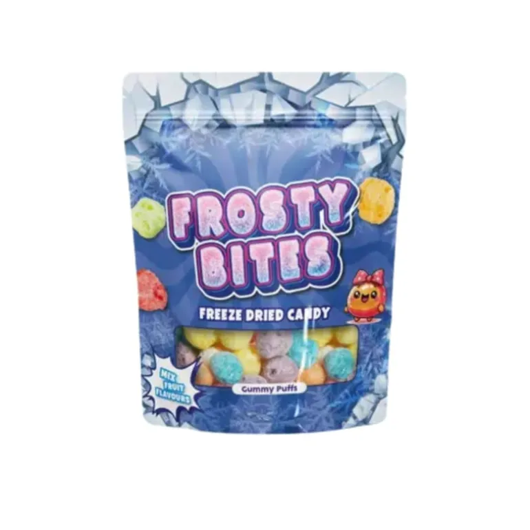 Maak kennis met de nieuwste snacktrend: de Freeze Dried Candy – Frosty Bites Gummy Puffs! Dit zakje van 50 gram zit vol heerlijke, gevriesdroogde snoepjes die je smaakpapillen verrassen met hun knapperige buitenkant en zachte, intense smaak. Door het vriesdrogen behouden de Gummy Puffs hun smaak, maar krijgen ze een verrassende, lichte crunch. Ideaal om van te genieten tijdens een filmavond, als zoete traktatie tussendoor of om te delen met vrienden. Met deze Frosty Bites geef je een nieuwe twist aan jouw favoriete snoepmoment. Een unieke en onweerstaanbare lekkernij die je geproefd moet hebben!