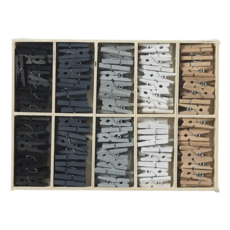 Deze houten knijpertjes in kistje zijn leuk en super handig. Gebruik de knijpers voor het ophangen van notitieblaadjes, foto’s of andere kleine dingen. Door het kistje kan je de knijpertjes weer gemakkelijk opbergen. De knijpertjes hebben verschillende kleuren en een afmeting van 2.5×3 cm per stuk.