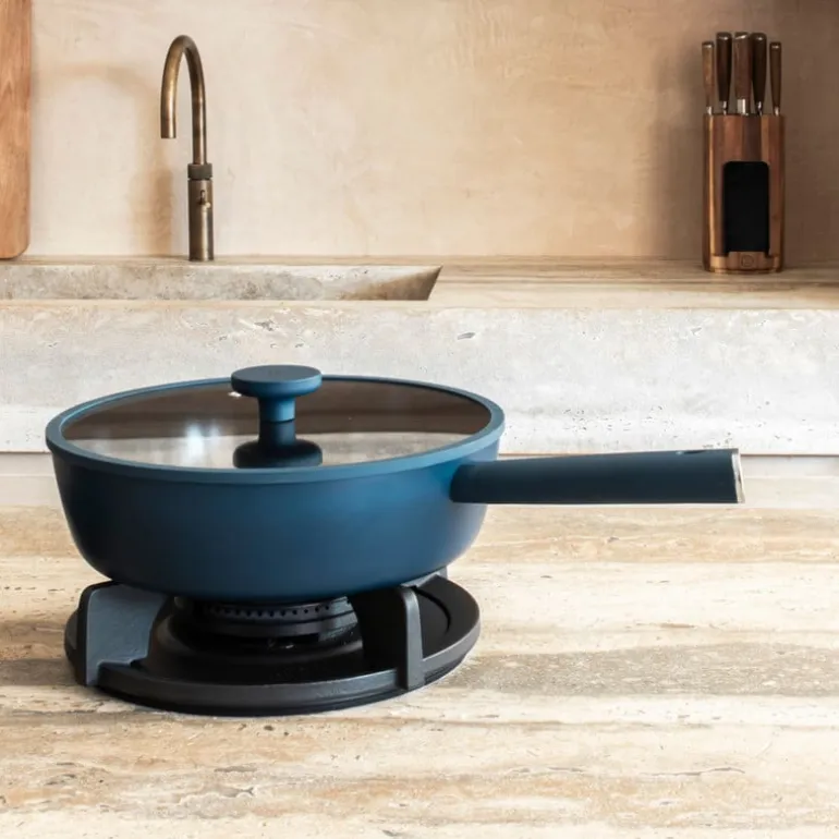 Met de nieuwe serie pannen, messen en ander kookgerei van tv-kok Hugo Kennis ben je verzekerd van goede kwaliteit, een mooi design en topfunctionaliteit. De basiskleur is donkerblauw, de favoriete kleur van Hugo, en die mag gezien worden. Leuk weetje: Hugo heeft alleen producten ontworpen die hij ook zelf in de keuken gebruikt!