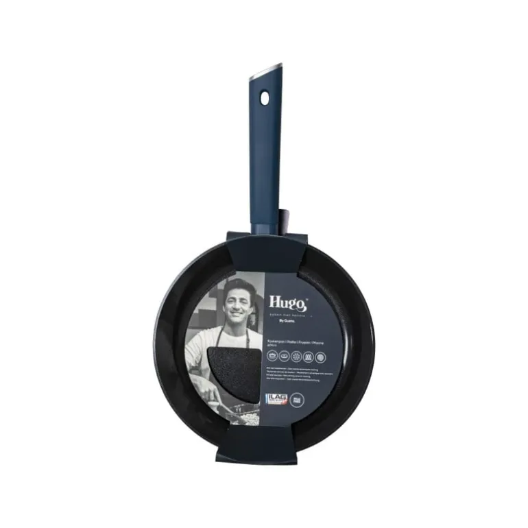 Met de nieuwe serie pannen, messen en ander kookgerei van tv-kok Hugo Kennis ben je verzekerd van goede kwaliteit, een mooi design en topfunctionaliteit. De basiskleur is donkerblauw, de favoriete kleur van Hugo, en die mag gezien worden. Leuk weetje: Hugo heeft alleen producten ontworpen die hij ook zelf in de keuken gebruikt!