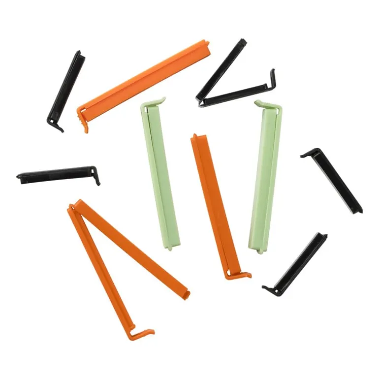 Met deze huishoudsclips sluit je een verpakking goed af. Handig voor het langer bewaren van chips, nootjes of koekjes. De clips zijn gemaakt van kunststof en hebben verschillende afmetingen. Deze verschillen van 1.1×11.1.4 cm en 0.7x6x0.8 cm. De huishoudclips komen in een set van 10 stuks en worden met een handig zakje geleverd.