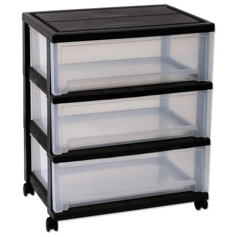 Iris biedt de perfecte oplossingen in opbergen. Dit handige ladesysteem van Iris heeft een zwart frame, is voorzien van 3 grote, brede en transparante lades en is inclusief 4 zwenkwielen. De inhoud per lade is 30 liter. Dit ladesysteem biedt je de mogelijkheid om artikelen zoals documenten, speelgoed en andere accessoires op te bergen. Ideaal voor in huis of in de garage. Het ladesysteem heeft een hoogte van 60 cm, een breedte van 54 cm en een diepte van 38 cm.