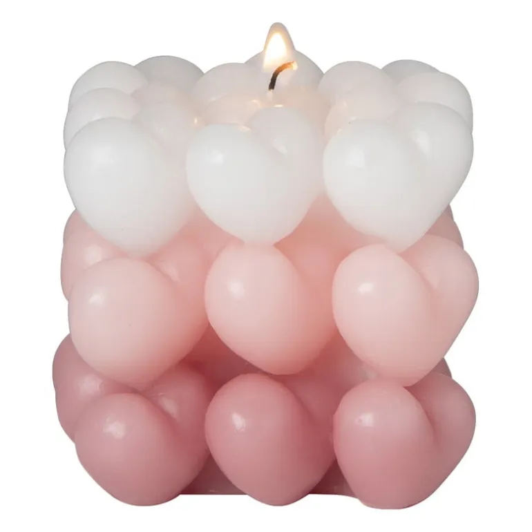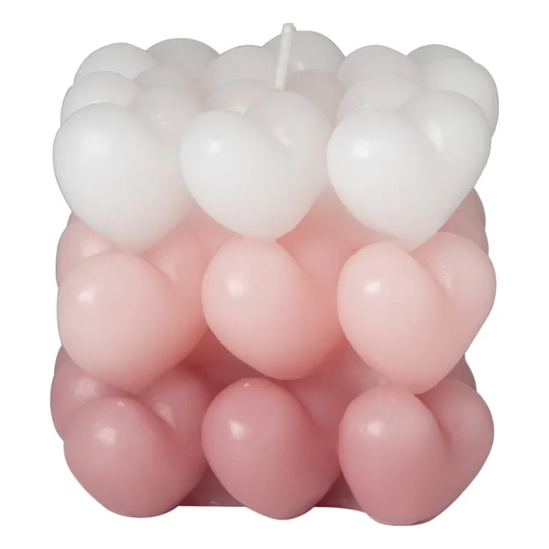 Oh yes, deze vierkante kaars met hartjes wil je hebben! De sierkaars heeft een opvallend en kleurrijk design. Perfect voor tijdens Valentijnsdag! Zet ‘m neer op je saltontafel, eetkamertafel of nachtkastje voor een kleurrijk statement. De kaars is gemaakt van paraffine en heeft een hoogte, breedte en diepte van 8 cm.