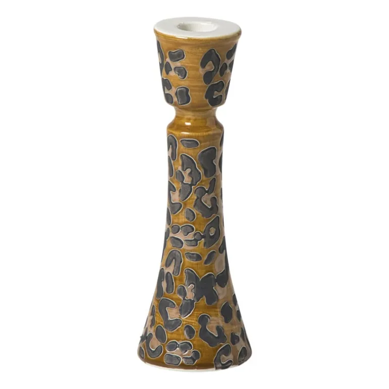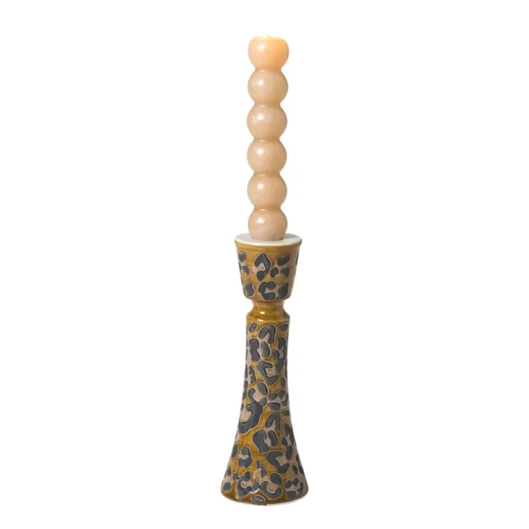 Deze kandelaar in warme bruintinten heeft een subtiel animal-patroon en een elegante vorm. Perfect voor een dinerkaars op de eettafel, dressoir of schouw. De combinatie van structuur en glans geeft ‘m net dat beetje extra, een sfeervolle toevoeging aan elk hoekje in huis.