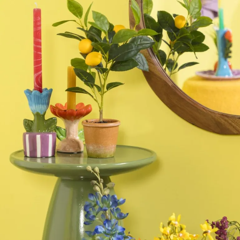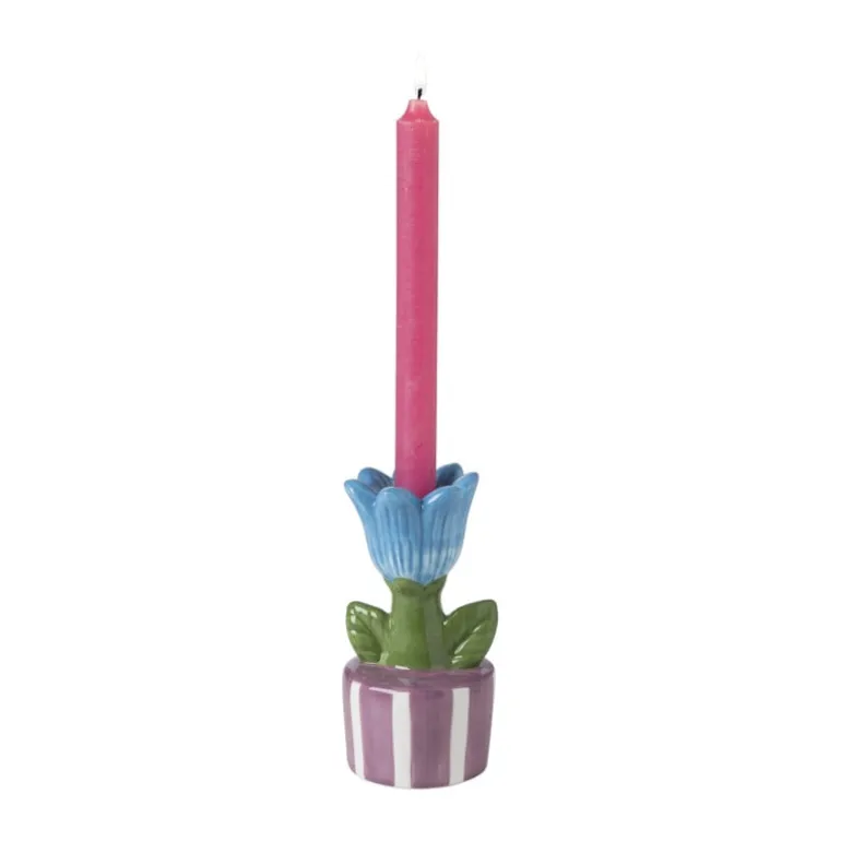 Haal de lente in huis met deze kandelaars in de vorm van een bloem in een pot! De zachte kleuren en speelse vorm maken hem perfect voor een vrolijke en frisse uitstraling. De bloemvormige kandelaar heeft een diameter van ø8.8 cm en een hoogte van 17.4 cm, waardoor het een perfecte aanvulling is op je eettafel, bijzettafel of vensterbank. In de kandelaar past een dinerkaars. Combineer met de andere maten voor een speels effect!