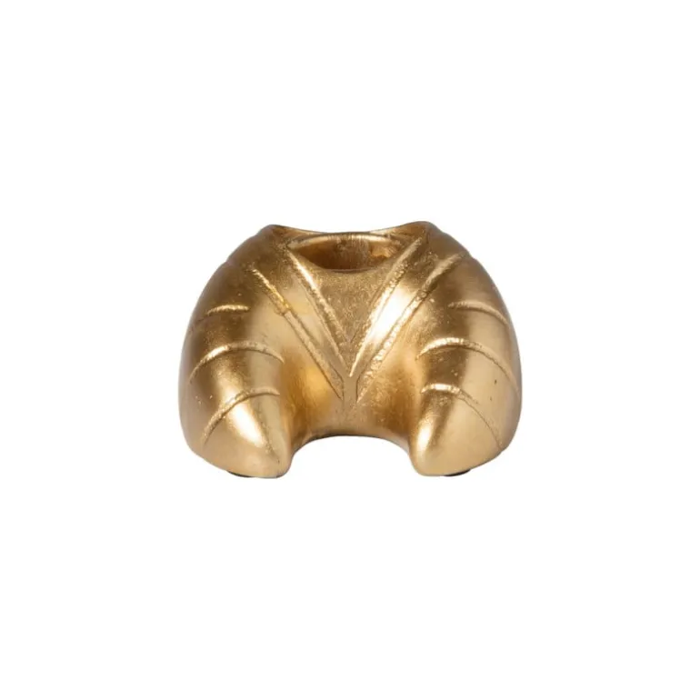 Hoe schattig is deze dinerkaarshouder in de vorm van een croissantje? Met zijn glanzende gouden afwerking en compacte formaat is deze kaarshouder een kleine maar opvallende toevoeging aan je interieur. Ideaal voor het plaatsen op dinertafels, bijzettafels of zelfs als decoratief accent op een dienblad. De kaarsenhouder heeft een hoogte van 4 cm, een breedte van 6.5 cm en een diepte van 6.5 cm en is gemaakt van polyresin.