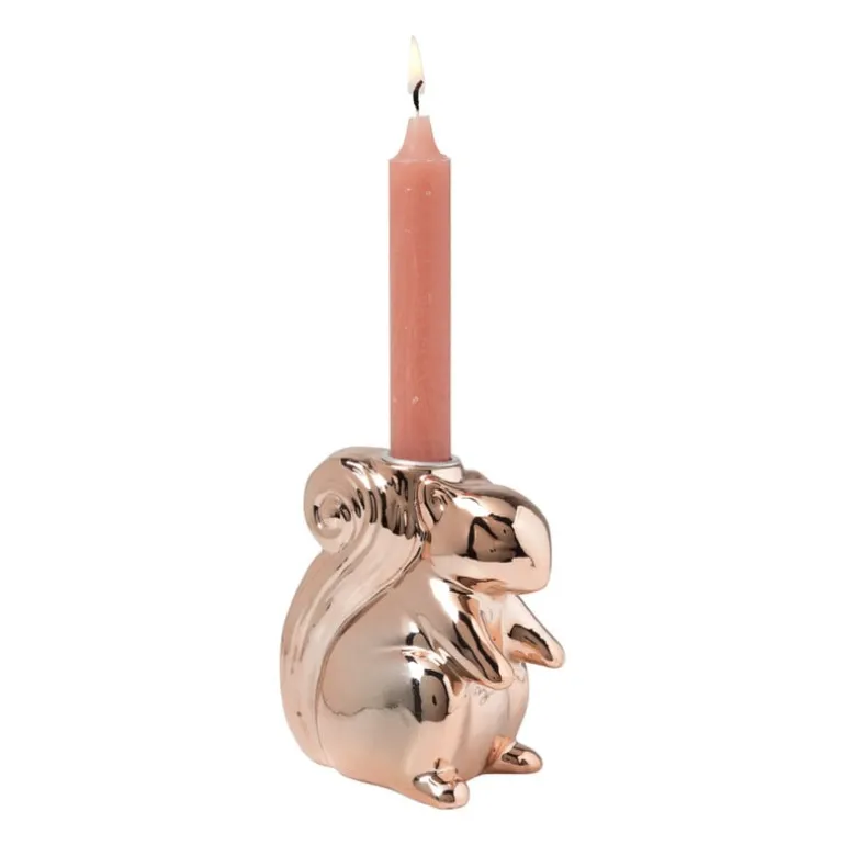 Deze dinerkaarshouder is onmisbaar als het gaat om herfstdecoratie. Deze schattige houder in rosé goud is 12,5 cm hoog en zorgt voor een warm en gezellig sfeer tijdens diners of feestelijke gelegenheden. Het glanzende rosé gouden afwerking geeft een moderne twist aan je interieur en maakt het een perfect accentstuk voor elke ruimte. Plaats je favoriete kaars erin en geniet van de sfeervolle gloed die deze eekhoornkaarshouder creëert.