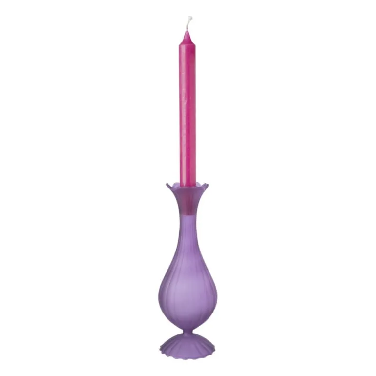 Een glazen kandelaar in huis is een echte musthave. Deze kandelaar is leuk te combineren met andere kandelaars voor zowel een chique als een wat stoerdere look. De kandelaar heeft een paarse kleur, is gemaakt van glas en heeft een afmeting van ø8×22.5 cm.