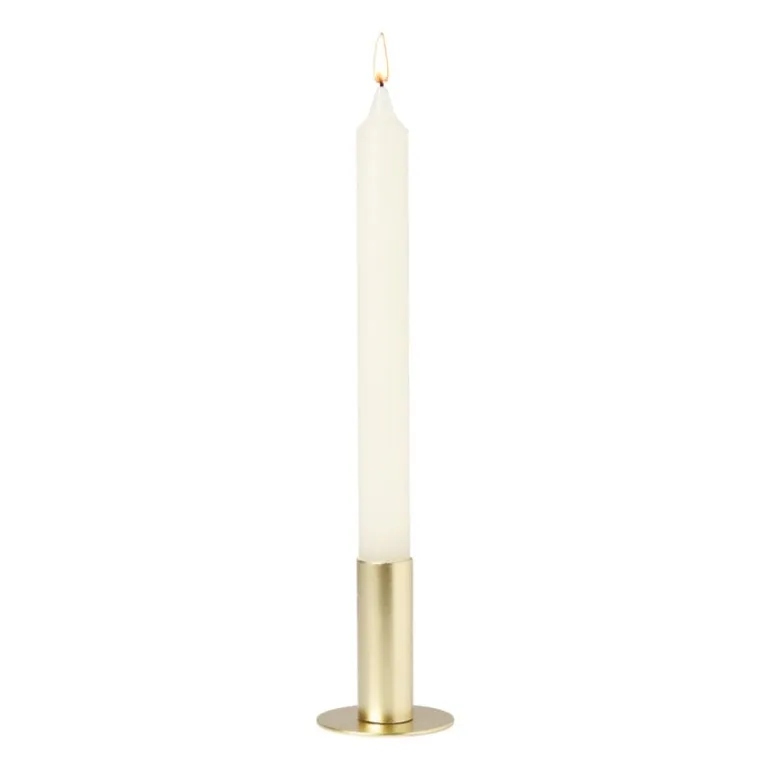 Deze stijlvolle dinerkaarshouder in het goud zorgt voor een chique uitstraling van elke ruimte. De kaarsenhouder is de perfecte manier om een tafelsetting of woonruimte naar een chiquer niveau te tillen. Met een diameter van 6 cm en een hoogte van 7 cm is de kaarshouder geschikt voor dinerkaarsen en staat hij stevig op tafel of op een andere ondergrond. Het tijdloze goud past bij vrijwel elke interieurstijl, van modern tot klassiek. Plaats neutraal gekleurde dinerkaarsen of juist felle dinerkaarsen in deze dinerkaarshouder om je interieur op te fleuren. De dinerkaarshouder is gemaakt van metaal en is beschikbaar in twee hoogtes en twee kleuren.