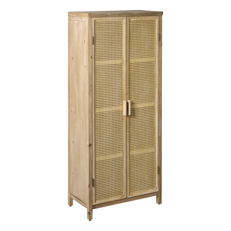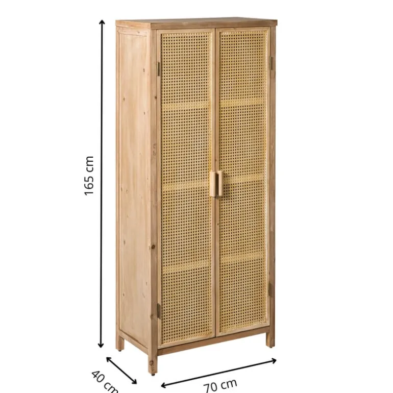 Deze kast is gemaakt van MDF, vurenhout en PE rotan, wat zorgt voor een stevige en stabiele constructie met een natuurlijke uitstraling.