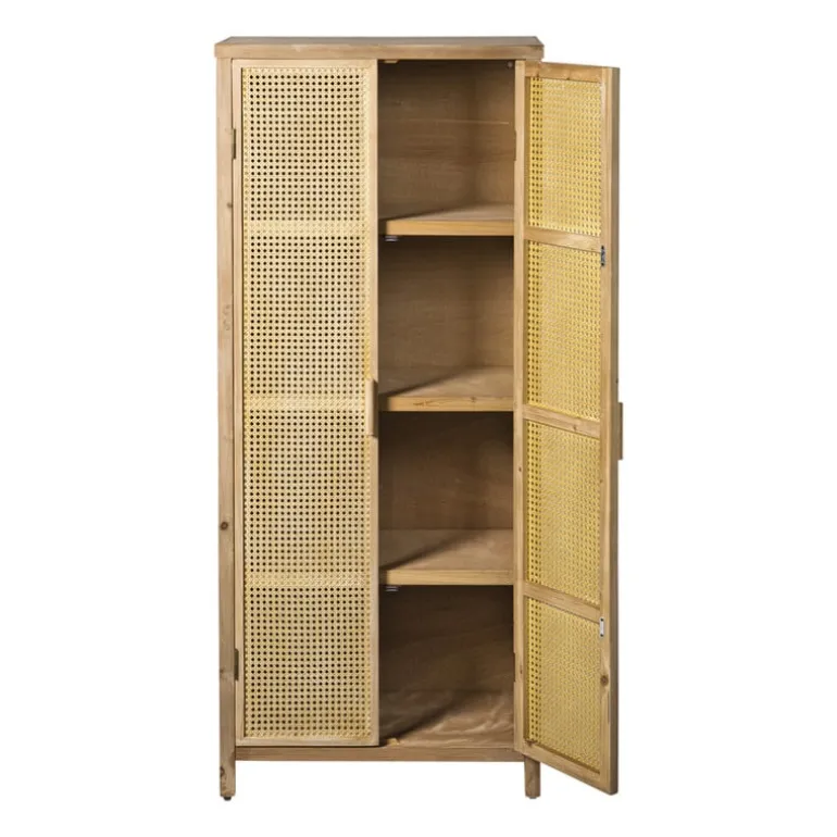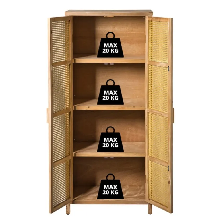 Geef je interieur een warme en natuurlijke uitstraling met deze prachtige rotan kast. Dankzij de luchtige rotan weving, witte afwerking en vier ruime opbergplanken, is deze kast niet alleen stijlvol, maar ook functioneel en veelzijdig. De vier ruime opbergplanken bieden voldoende ruimte om kleding, boeken, servies of decoratie netjes op te bergen. Ideaal voor de woonkamer, slaapkamer of hal: deze kast kan overal in huis worden gebruikt! Gebruik hem als kledingkast in de slaapkamer, voorraadkast in de keuken of als stijlvolle opbergkast in de hal of woonkamer.