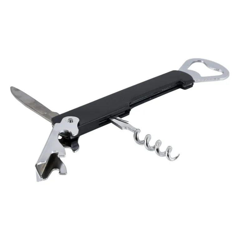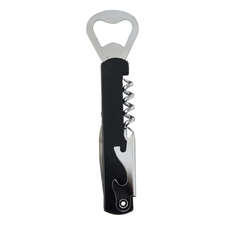 Hoe handig is dit kelnersmes? Het bevat alles wat je nodig hebt voor het openen van een heerlijke fles wijn of bier. Het kelnersmes heeft een compact formaat en het design is eenvoudig. De opener is gemaakt van kunststof en metaal.