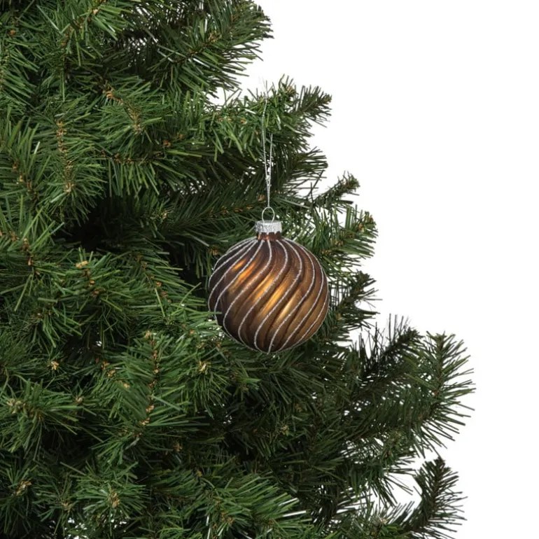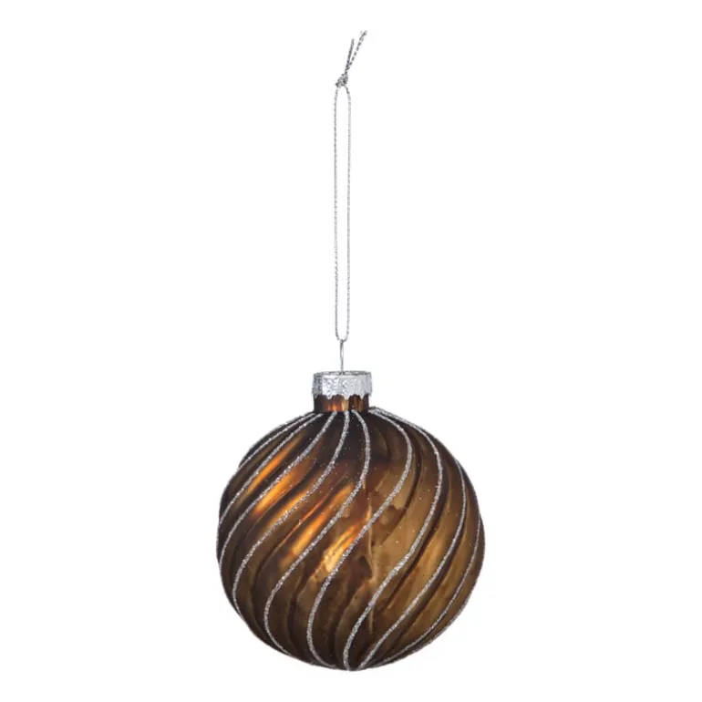 Warm en stijlvol: deze bruine kerstbal met gedraaide strepen brengt diepte en gezelligheid in je kerstdecoratie.