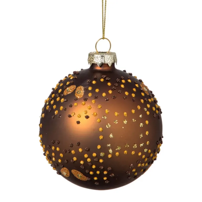 Deze matte kerstbal in diep donkerbruin is afgewerkt met een fijn patroon van warme glitteraccenten. De combinatie van kleur en structuur geeft je kerstboom een stijlvolle en elegante uitstraling.Mooi in een natuurlijk kerstthema met bruintinten goud en koper. Een subtiele blikvanger met klasse.