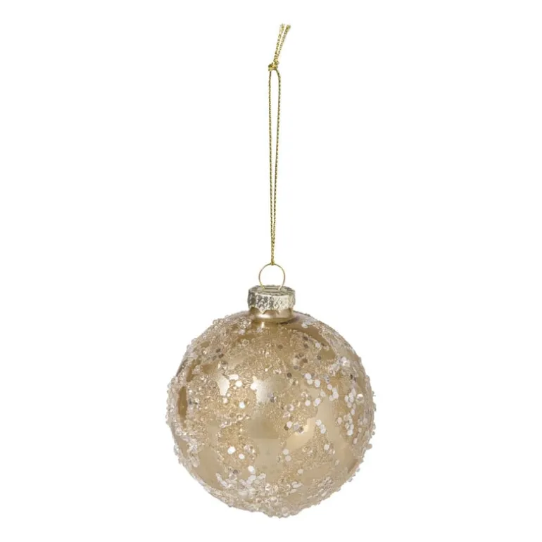 Deze kerstbal is een echte blikvanger dankzij de schitterende gouden sequins die het licht prachtig weerkaatsen. De glinsterende pailletten zorgen voor een feestelijk en luxe effect, perfect om je kerstboom een glamoureuze uitstraling te geven.Ideaal voor wie houdt van sparkle en een beetje extra glamour tijdens de feestdagen. Combineer deze bal met andere glanzende ornamenten of mix hem juist met matte kerstballen voor een speels contrast. Zo wordt jouw boom gegarandeerd het stralende middelpunt.
