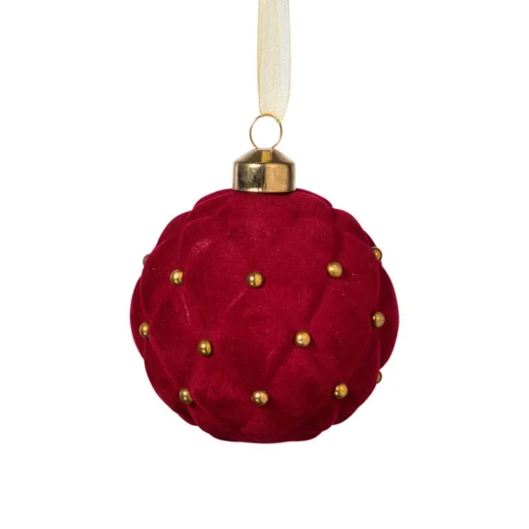 Deze fluweelrode kerstbal is een echte sfeermaker in je kerstboom. Het zachte velvet en de elegante gouden studs zorgen voor een chique uitstraling die perfect past bij een klassieke, glam of romantische kerststijl.De bolvorm met gewatteerd effect geeft de bal extra diepte en een luxueuze look. Hang hem aan een mooi lint of combineer met andere velvet decoraties voor een warm en feestelijk geheel.