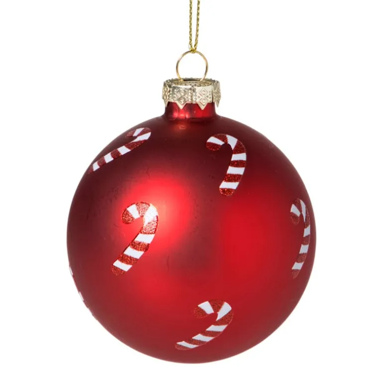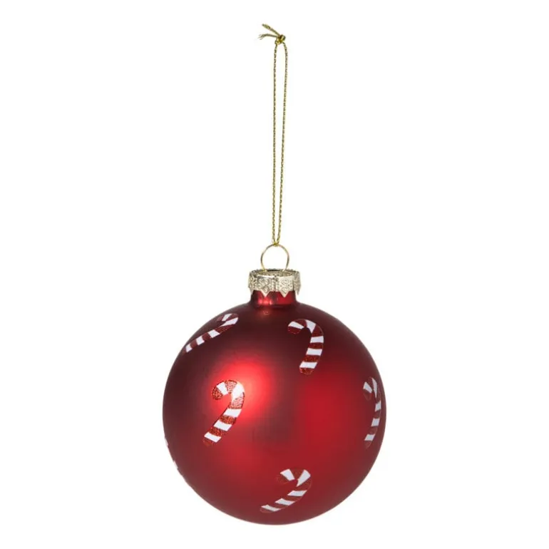 Deze rode kerstbal met vrolijke zuurstokjes brengt meteen een speelse en traditionele kerstsfeer in je boom. Het matte rood vormt een prachtig contrast met de wit-rode candy canes die rondom de bal zijn versierd. Een echte klassieker die je boom een gezellige en feestelijke uitstraling geeft.Perfect om te combineren met andere rode en witte kerstdecoratie voor een klassieke kerststijl, of juist met glinsterende gouden accenten voor een warme en luxe touch. Een bal die gegarandeerd een glimlach brengt!