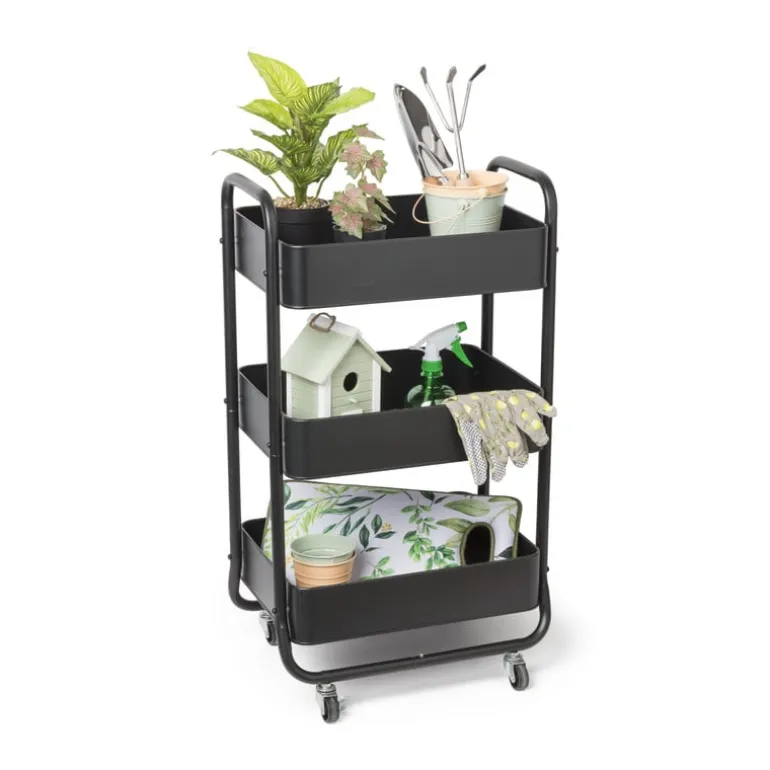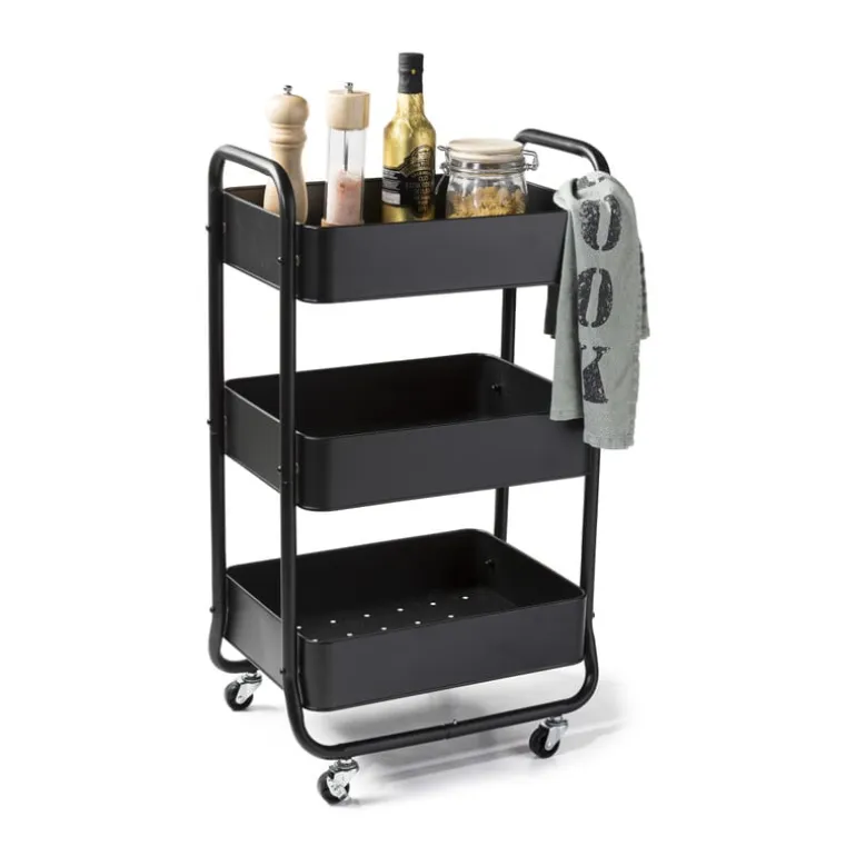 Deze keuken trolley heeft 4 handige wieltjes en 3 etages. Gebruik de trolley voor huishoudelijke spullen. Zet de trolley in de keuken of badkamer en berg zo gemakkelijk al jouw spulletjes op. De keuken trolley is eenvoudig te monteren.