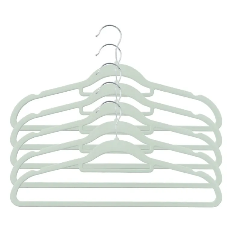 Deze set van 5 stijlvolle groene kledinghangers hang je graag in de kledingkast of aan de kapstok. De kleerhangers hebben een zachte laag van vilt. Ze voelen prettig aan en zijn toch enigszins ruw zodat je blouse er niet af glijdt. Ook hebben ze een broeklat, zodat je jouw broeken ook netjes kan ophangen. De kledinghangers zijn gemaakt van vilt en metaal en hebben een hoogte van 23 cm, een breedte van 45 cm en een diepte van 0.6 cm. De kleding komen in een set van 5 en zijn ook verkrijgbaar in verschillende kleuren.