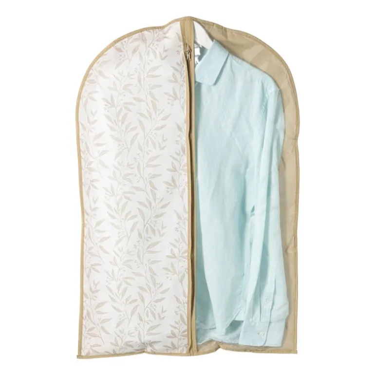 Bewaar je favoriete kleding netjes, stofvrij en georganiseerd met deze stijlvolle kledinghoes. Dankzij het doorzichtige voorpaneel zie je in één oogopslag wat erin hangt. De bruine/beige leafs print maakt zelfs het opbergen van kleding een stijlvolle aangelegenheid.