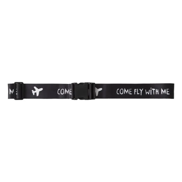 Come fly with me! Maar bind nog wel deze babageriem om je koffer voordat je het vliegtuig inspringt. Het verstevigt namelijk je koffer én door de quote valt jouw koffer op tussen de andere koffers op de bagageband. De kofferriem is 2 meter lang en verstelbaar.