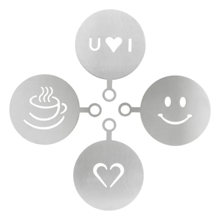 Hoe handig is deze koffie sjabloon? Creëer latte art voortaan in een handomdraai. Leg deze sjablonen gemakkelijk op je koffie beker, strooi er wat cacao poeder overheen en klaar ben je! De sjablonen komen in een set van 4 en hebben een afmeting van 10.5×8 cm.