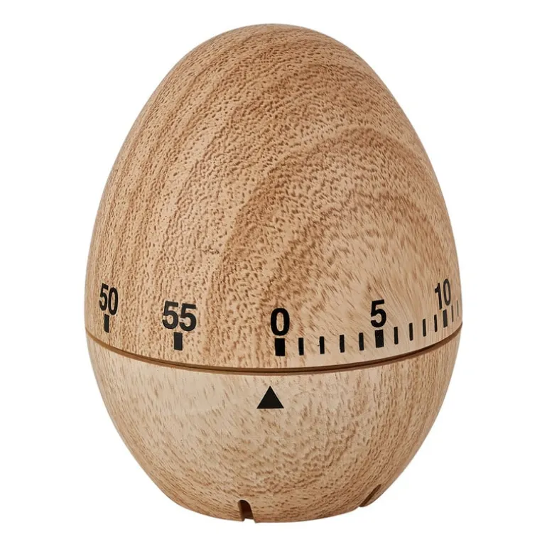 Met deze analoge eiwekker laat je jouw gerechten nooit meer aanbranden. Een musthave in elke keuken. De eivormige kookwekker is in te stellen tot maximaal 60 minuten. Draai de eerste keer de kookwekker volledig tot de 60 minuten daarna kan je zelf de geschikte tijd instellen. De wekker is gemaakt van plastic met een houtlook, waardoor deze een robuuste uitstraling heeft.