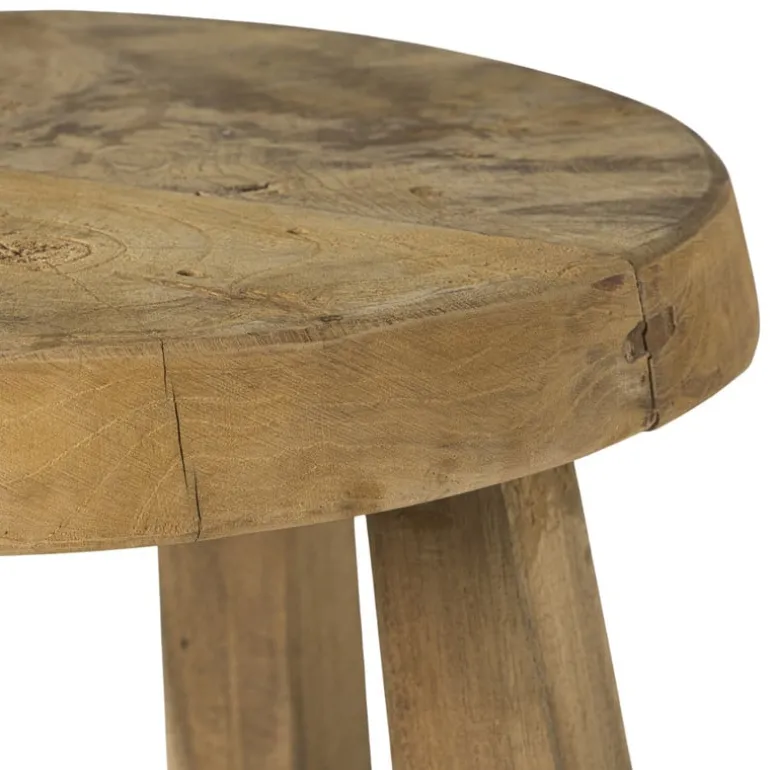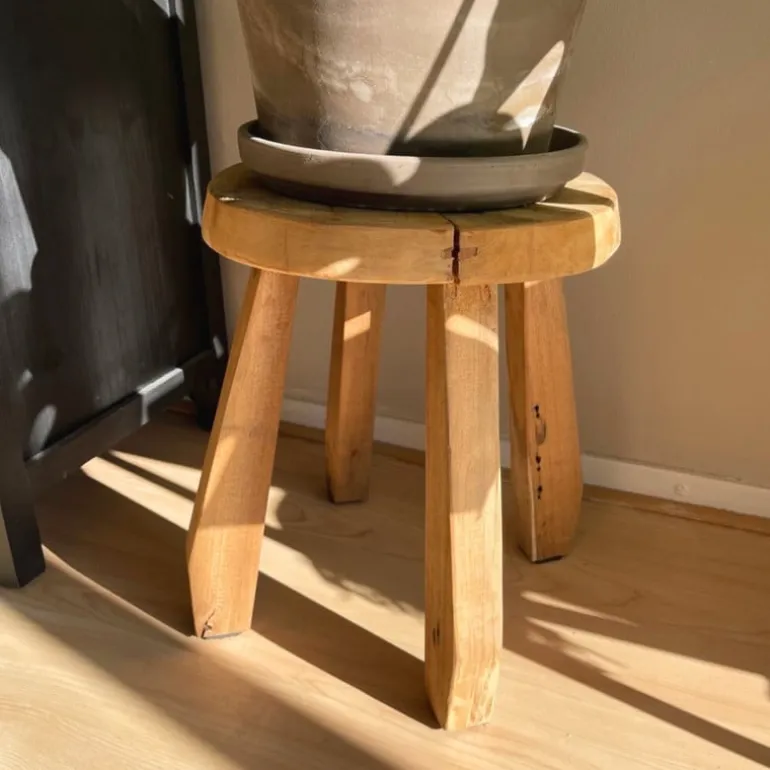Het krukje is gemaakt van recycled hout.