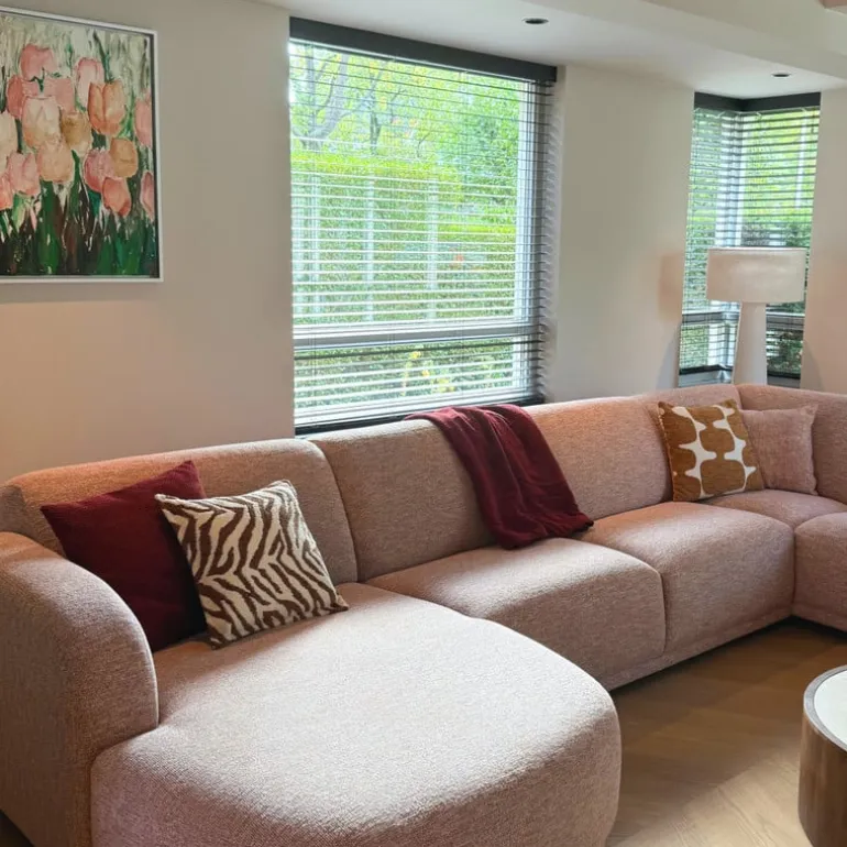 De jacquard geweven print in bruin en wit zorgt voor een natuurlijke look met een speelse touch. Gemaakt van stevige stof, dus ideaal voor dagelijks gebruik. Perfect voor een interieur dat rust én karakter uitstraalt.