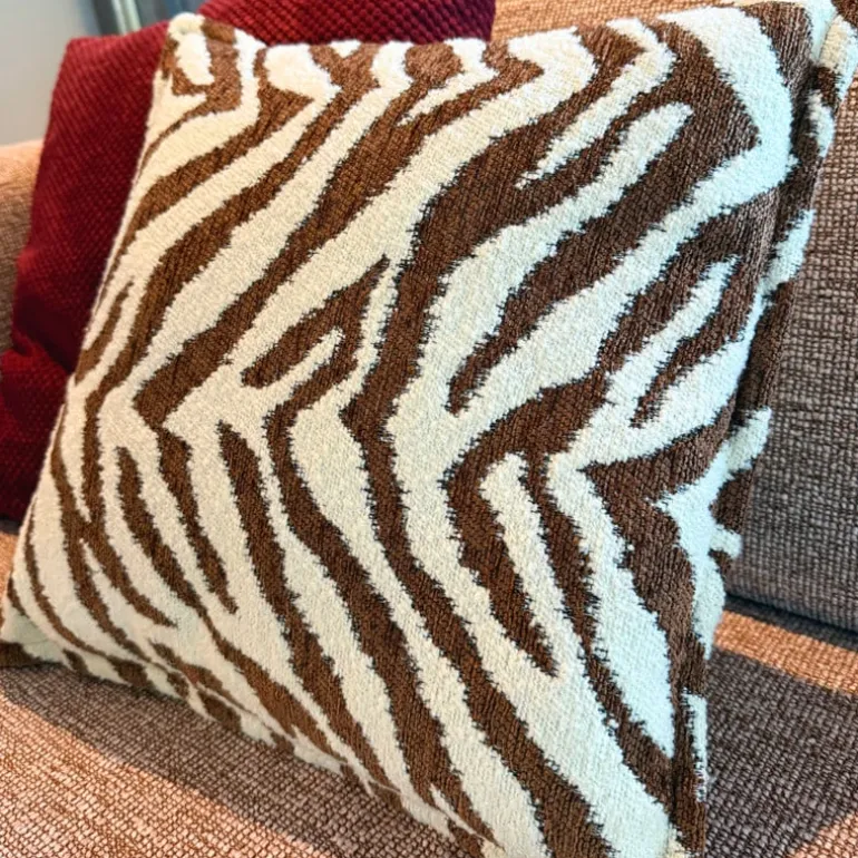 Laat je interieur opbloeien met dit jacquard geweven kussen met een leuk dierenprintje. Het rijke patroon en de warme tinten zorgen voor een retro vibe met een moderne twist. Perfect voor op de bank, een fauteuil of je bed. Het kussen heeft een afmeting van 45×45 cm. Combineer ‘m met effen kussens of juist andere kussens met print voor een speelse mix & match.