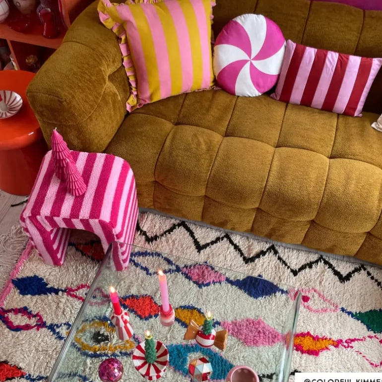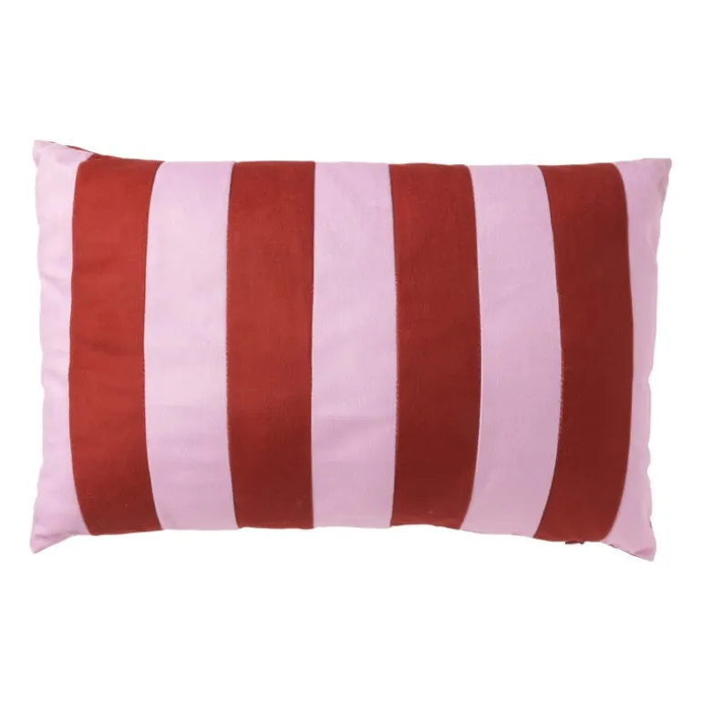 Dit vrolijke kussen wil je hebben! Het kussen heeft rood en roze strepen en fleurt elke ruimte op. Combineer ‘m met andere kleurrijke kussens op je bank, in een fauteuil of op je bed. Het kussen is gemaakt van polyester en heeft een hoogte van 30 cm en een breedte van 45 cm. Het kussen is aan de voor- en achterkant hetzelfde en is voorzien van een ritssluiting aan de onderkant. Hierdoor kan de hoes gemakkelijk worden verwijderd en worden gewassen in de wasmachine (maximaal 30°C).