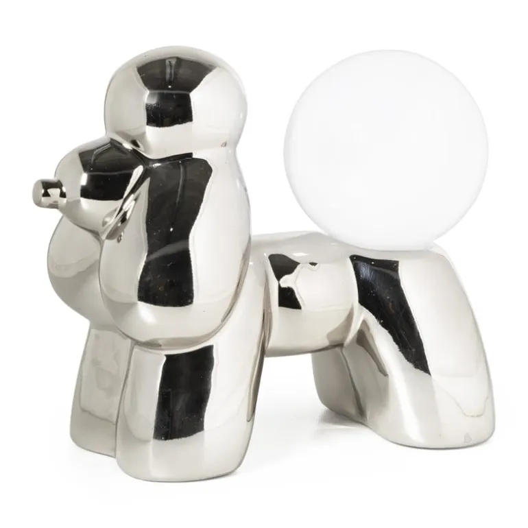 Dit zilverkleurige lampje in de vorm van een poedel is een speels accessoire voor op je bureau, nachtkastje of kinderkamer. Het compacte formaat maakt ’m handig te plaatsen en de metallic finish zorgt voor een stijlvolle knipoog. Leuk voor hondenliefhebbers of gewoon voor wie houdt van quirky decoratie.