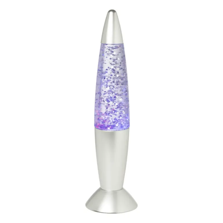Deze glitterlamp fleurt jouw slaapkamer, woonkamer of kantoor direct op! De Glitterlamp is gevuld met glinsterende glitterdeeltjes die dansen en fonkelen als het licht erdoorheen schijnt, waardoor een betoverende en magische sfeer ontstaat. De glitterlamp heeft een hoogte van 36 cm. De lamp werkt op 3 AAA batterijen, deze zijn exclusief.
