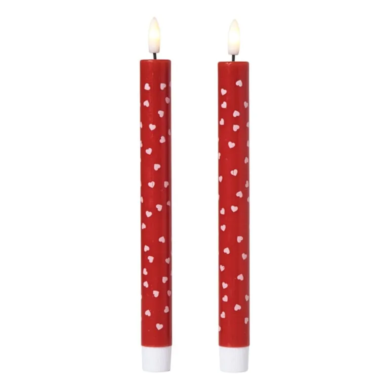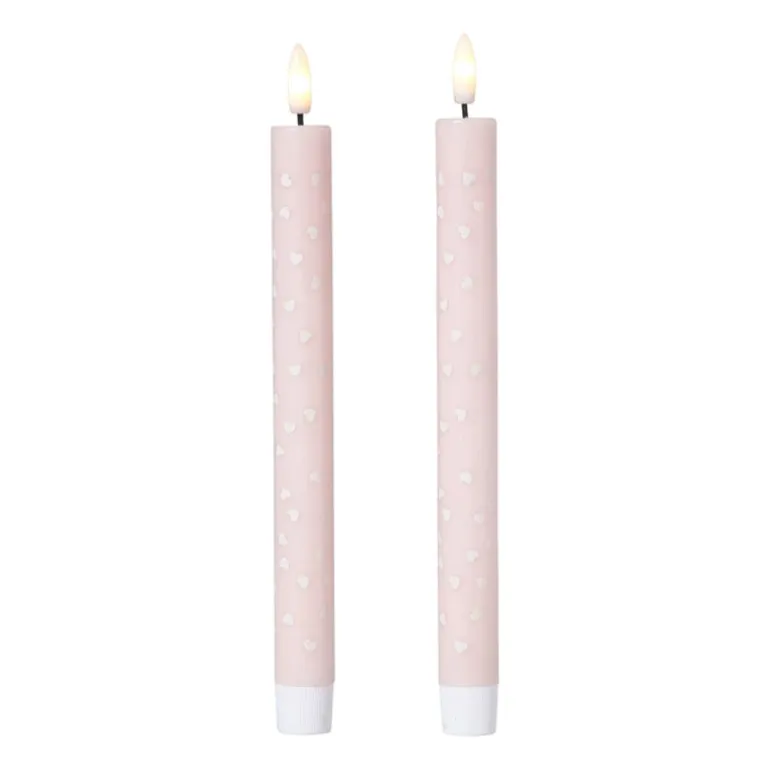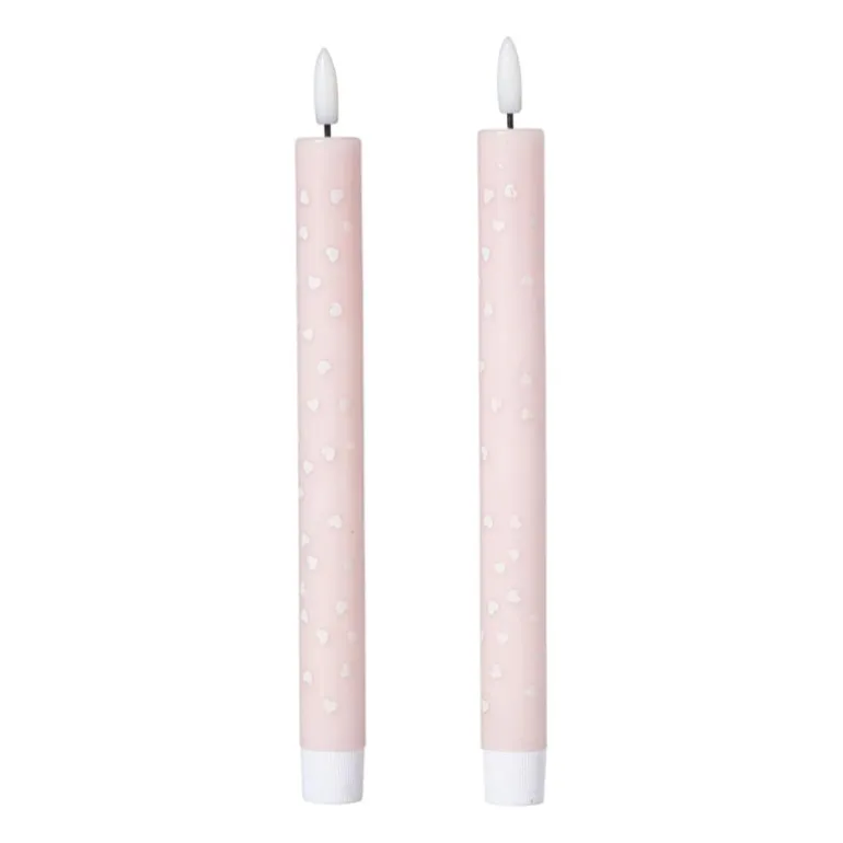 Deze ledkaars met hartjesprint is pure liefde! De zachte roze en rode tinten zorgen voor een romantisch accent in je woonkamer. Door het slanke design past de kaars mooi in smalle kandelaars of tafeldecoraties. De flikkerende vlam lijkt net echt, maar is 100% veilig. Perfect voor een gezellige avond of als vrolijke toevoeging aan de tafel.