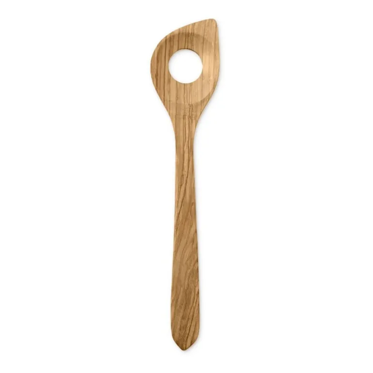 Deze olijfhouten lepel met gat is een must om aan je keukengerei toe te voegen! De lepel is super handig om mee te koken, bijvoorbeeld bij het omscheppen van aardappels in de pan of om wokgerechten mee te bereiden. Dit exemplaar heeft echter nog een functie. Het gat in de lepel is de afmeting voor de hoeveelheid pasta voor 1 persoon. Dus maak je pasta, maar weet je niet precies hoeveel je moet maken? Meet het met deze multifunctionele lepel.