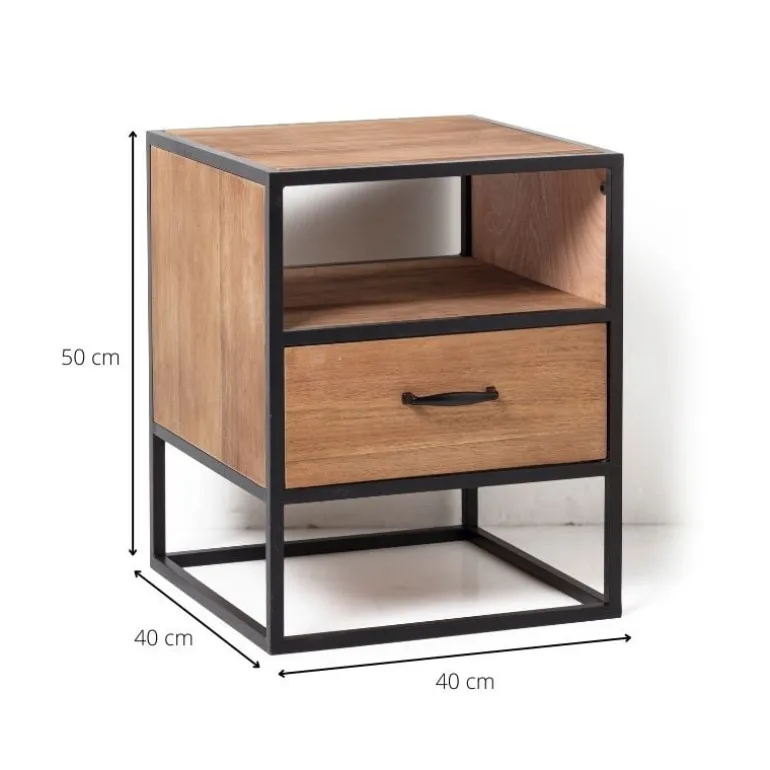 Het nachtkastje heeft een hoogte van 50 cm en een breedte en diepte van 40 cm. Verder heeft het nachtkastje ook nog 1 lade.