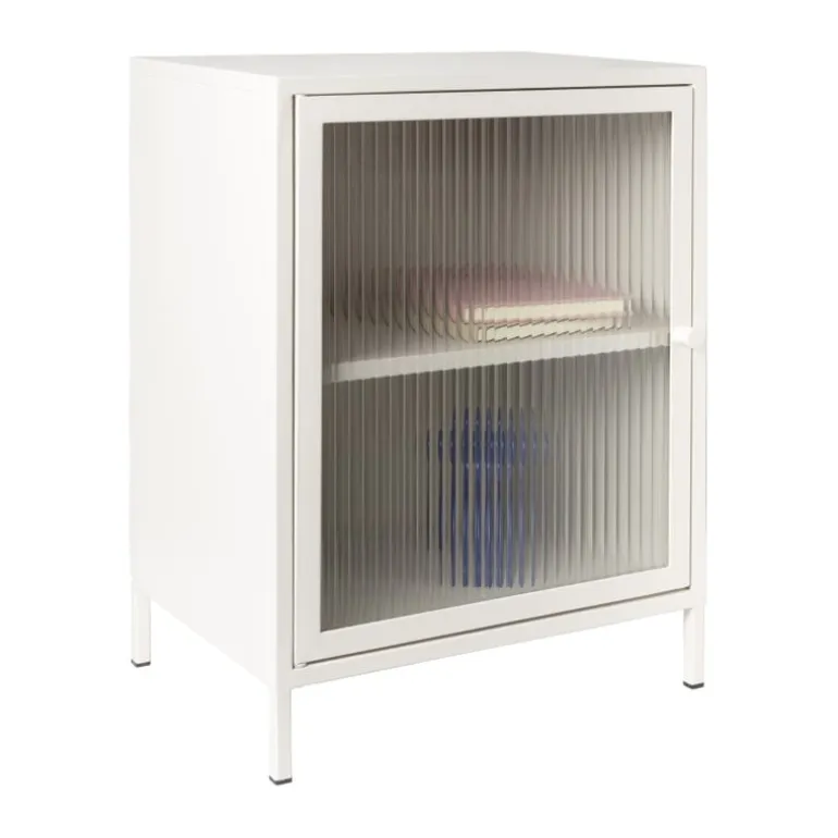 Het metalen frame geeft de meubels een stevige en robuuste constructie, waardoor ze bestand zijn tegen dagelijks gebruik. Dit maakt de Luca kasten niet alleen licht van gewicht, maar ook sterk en stabiel. De geribbelde glazen panelen voegen een speels en elegant element toe aan het design. Dit glas zorgt voor een subtiele doorkijk, waardoor je spullen deels zichtbaar blijven zonder dat de kast er rommelig uitziet.