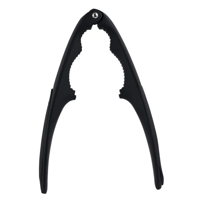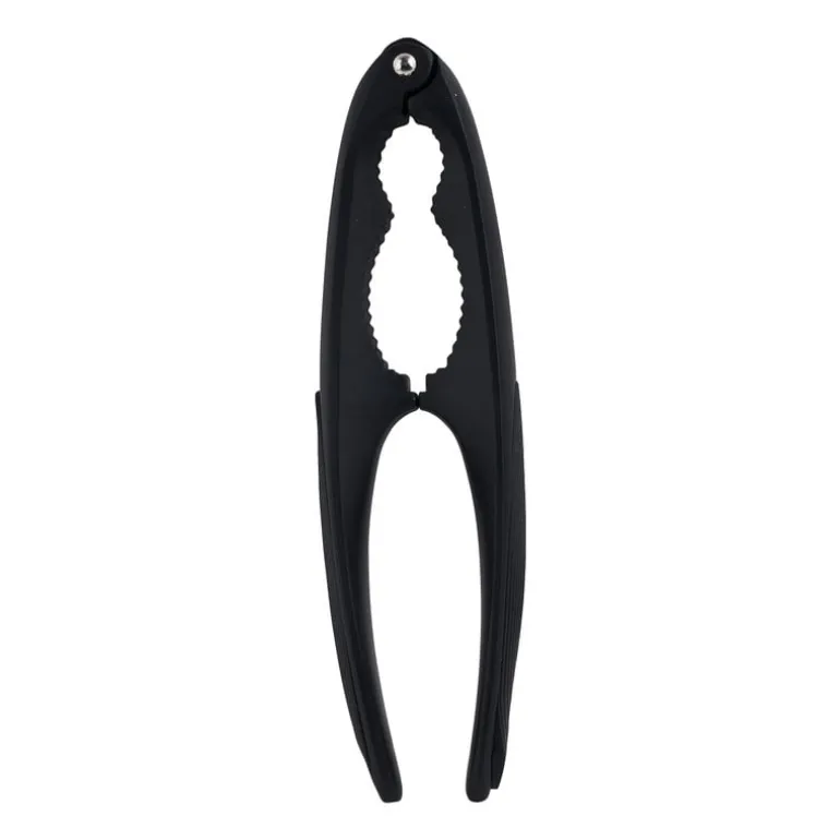Noten zijn zo geopend met deze handige notenkraker. Het werkt heel eenvoudig. Leg de noot in het geribbelde vlak en druk de hendels stevig naar elkaar toe. De schil van de noot barst moeiteloos in stukjes. De mat zwarte notenkraker is gemaakt van metaal.