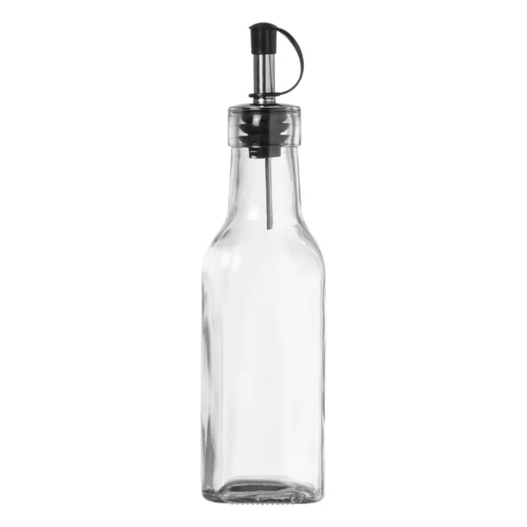 Een olie/azijnfles is de must have voor elke culinaire liefhebber die graag een vleugje smaak aan zijn gerechten toevoegt. De olie/azijnfles is gemaakt van glas, heeft een inhoud van 180 ml en een afmeting van ø4.9×19.6 cm.