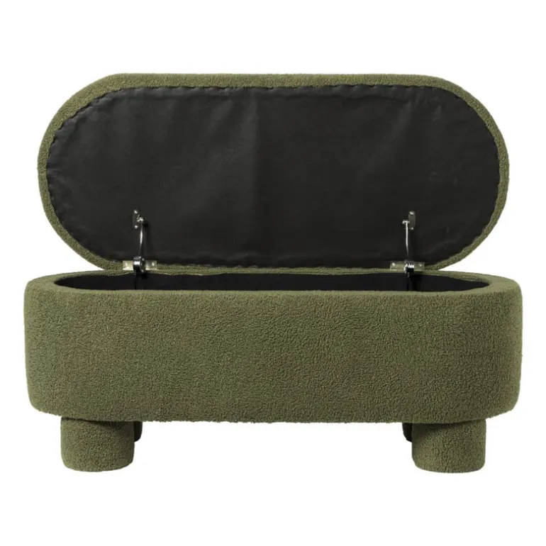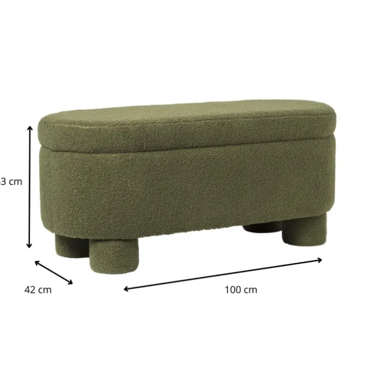 De opbergbank is gemaakt van heerlijke zachte teddy stof en is groen van kleur. De bank is ook verkrijgbaar in het wit.