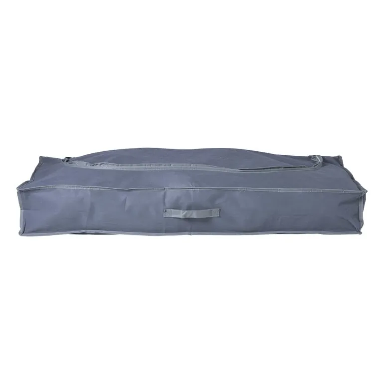 Heb je smalle ruimte onder het bed? Dan is deze lage opberghoes van 15 cm hoog ideaal. Perfect voor beddengoed, schoenen of winterkleding. De grijze kleur past subtiel in elk interieur en het grote venster laat je snel zien wat er in zit. Met een formaat van 15x100x45 cm benut je de ruimte onder het bed optimaal. De ritssluiting loopt over de hele lengte en de handvatten zorgen voor makkelijk schuiven en optillen. De opberghoes beschermt onder andere tegen schimmel, vocht en stof.