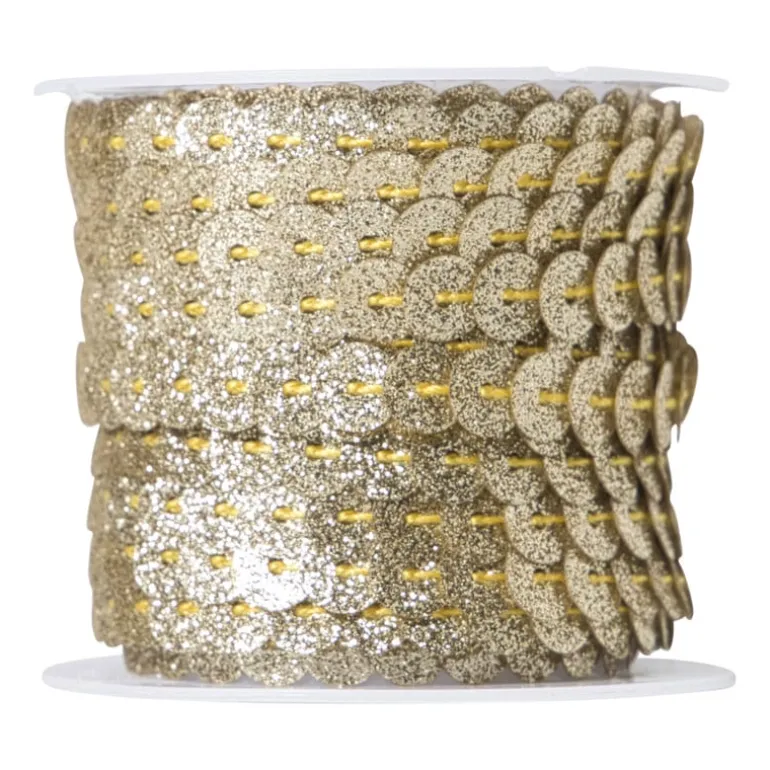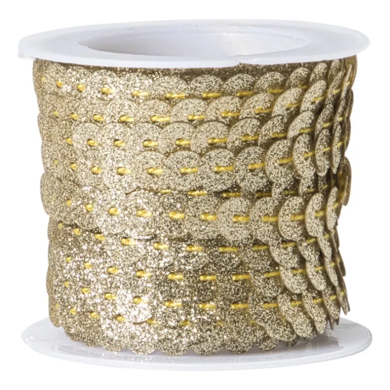Laat het glinsteren met dit vrolijke pailettenband in het goud! Perfect voor het versieren van kleding, tassen, hoeden of feestversiering. De kleuren veranderen mee met het licht en geven een speels en feestelijk effect. Met 5 meter op de rol kun je lekker losgaan met je creatieve plannen. Ideaal voor carnaval, verkleedpartijtjes, DIY-projecten of gewoon omdat je van glitter houdt.