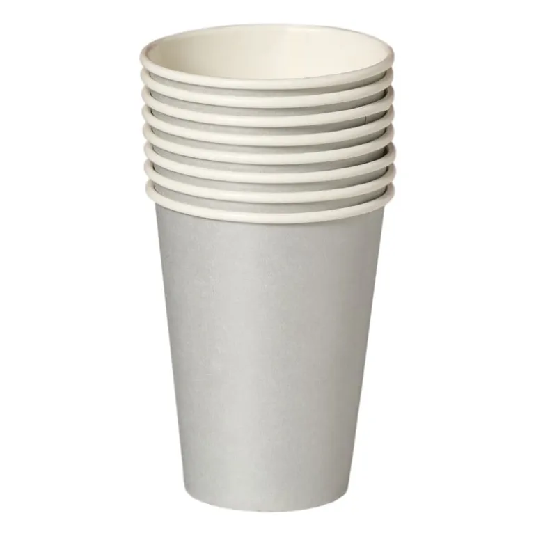 Geef je feesttafel een chique uitstraling met deze zilveren papieren bekers. De glanzende afwerking maakt ze perfect voor verjaardagen, bruiloften of feestdagen. Geschikt voor zowel koude als warme dranken en dankzij het stevige papier zijn ze praktisch én stijlvol.De set bevat 8 bekers met een formaat van 75x75x140 mm. Combineer ze met bijpassende servetten en een tafelkleed in dezelfde tint voor een compleet geheel.