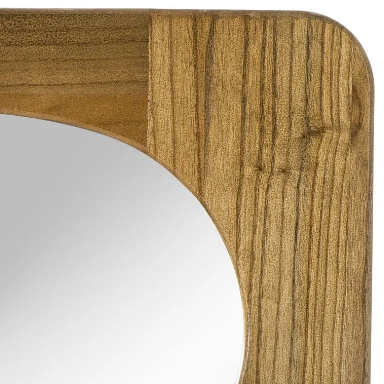 De spiegel is gemaakt van acaciahout en glas.